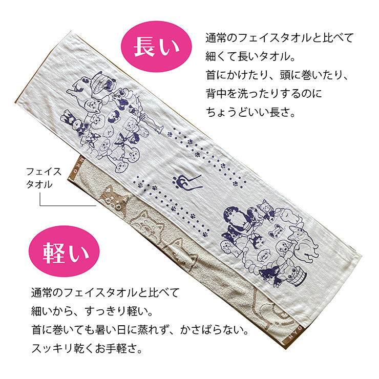 通常のフェイスタオルよりも「長い、薄い、かるい」手ぬぐいタオル。